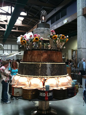 Whilst in Spokane we visited The Farm Chicks Antique Show. Had I know we were allowed to take pictures I would’ve brought my camera along! But after visiting Serena’s blog – I see that many visitors did just that – I think this blogger got some great snaps! Here is the one shot we got of the ‘cake’ meeting spot. Made of barn-junk. Curated by Celeste from Chaps & Cake. Too cool! . Got some great inspiration. Made some fun purchases!