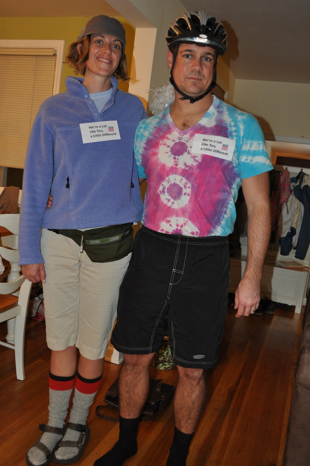 And a few of the adults: Auntie Sha Sha and Uncle Jeff as Northwest Profiles: #56 Socks and Sandals girl, and #15 Recumbent Bike Commuter. I thought these were hilarious!
