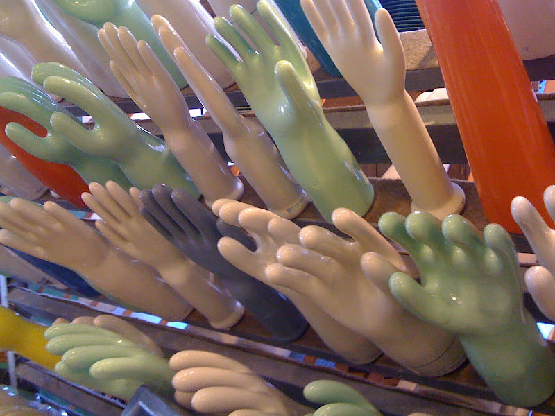 these vintage rubber glove molds were so cool. Loved the color palette.