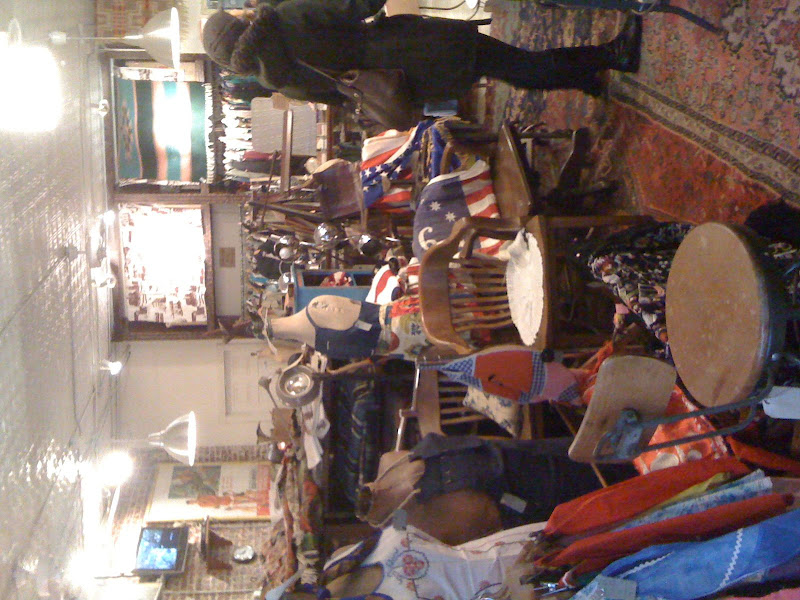 This shop was actually TWO shops next door to each other. One side was all vintage quilts, fabric, curtains, cowboy boots, scarves, hankies, rugs. The other side was all vintage clothing.