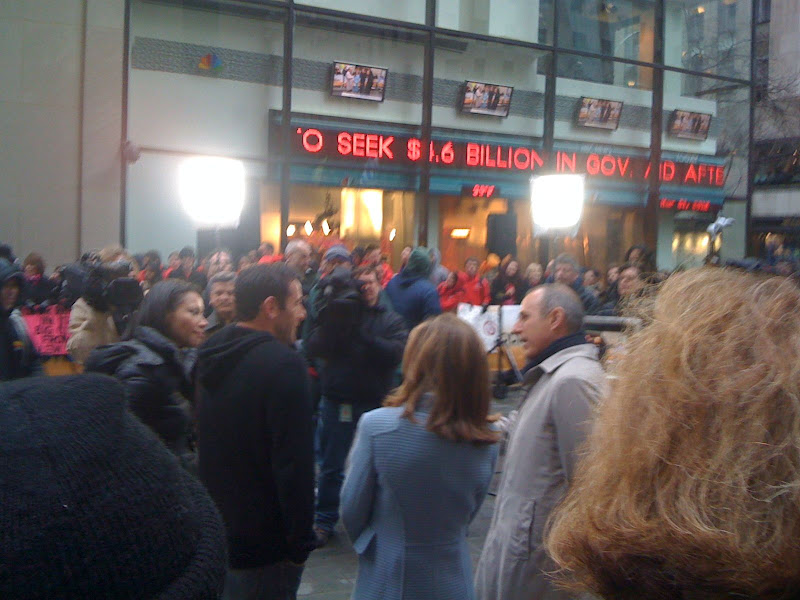 Today was our day of being in the right place at the right time. We thought we would miss our chance to catch The Today Show on the plaza – due to our late night-clubbing:). But despite sleeping in and coming up out of the subway at 8:40 – we walked right up to this:?