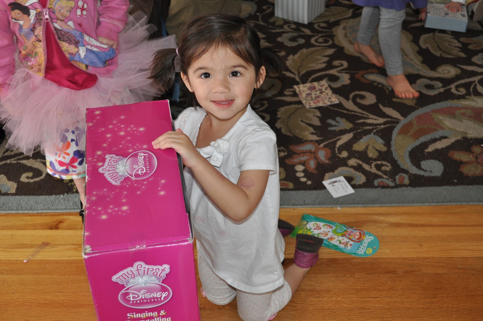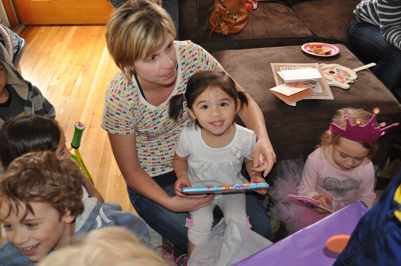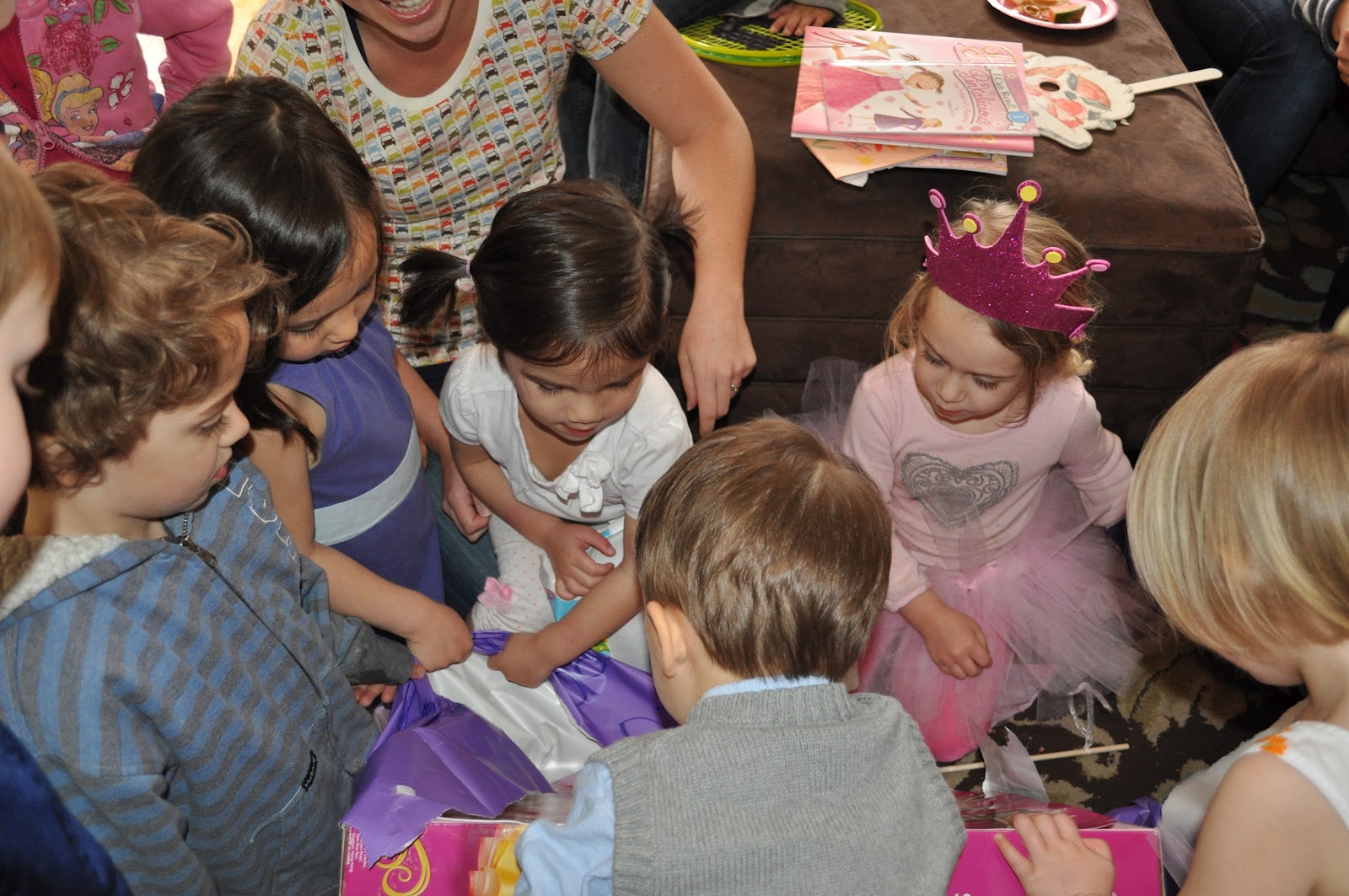 She had a lot of help opening presents!