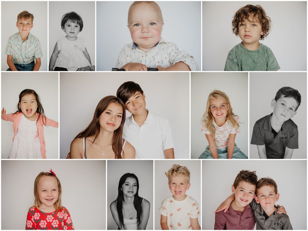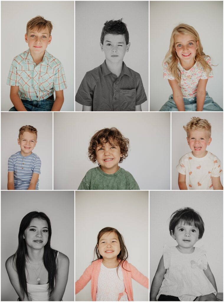 I spend 2-3 minutes with each child talking with them and getting them comfortable in front of the camera. My goal is for them to show their true personality – whether they’re shy or spunky, contemplative or curious, serious or silly! I present a full gallery of anywhere from 5-20 photos for families to choose from (and most choose them all)!