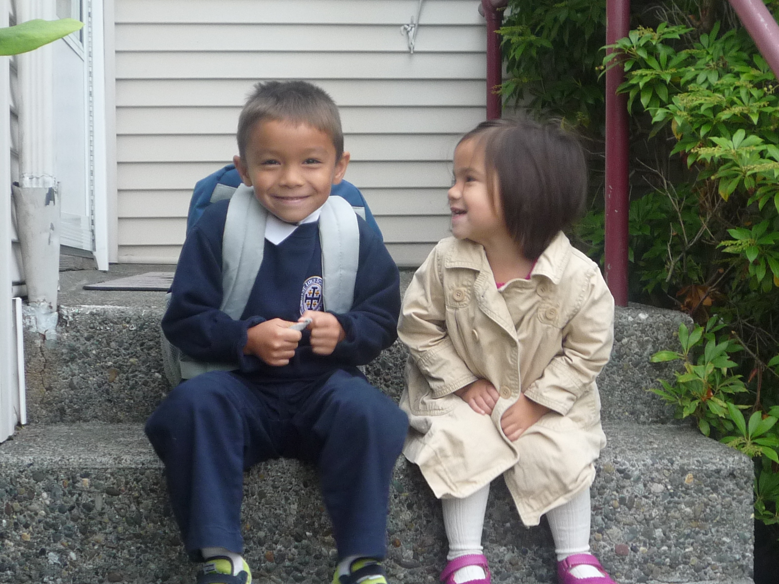 I’m sitting here posting the first day of school pictures on my FIRST morning off while both kids are at school! Oliver started school (5 mornings a week) a few weeks ago and is loving it. Opal will be going 2 mornings a week at a co-op where I go with her one day and she goes by herself the other.