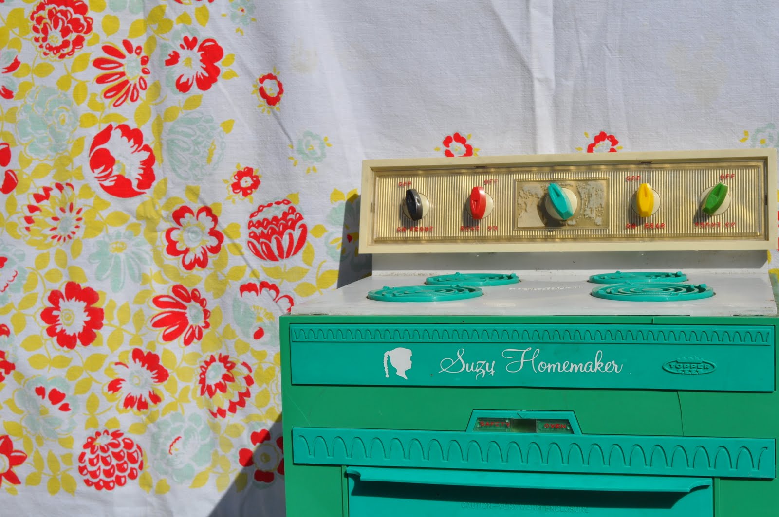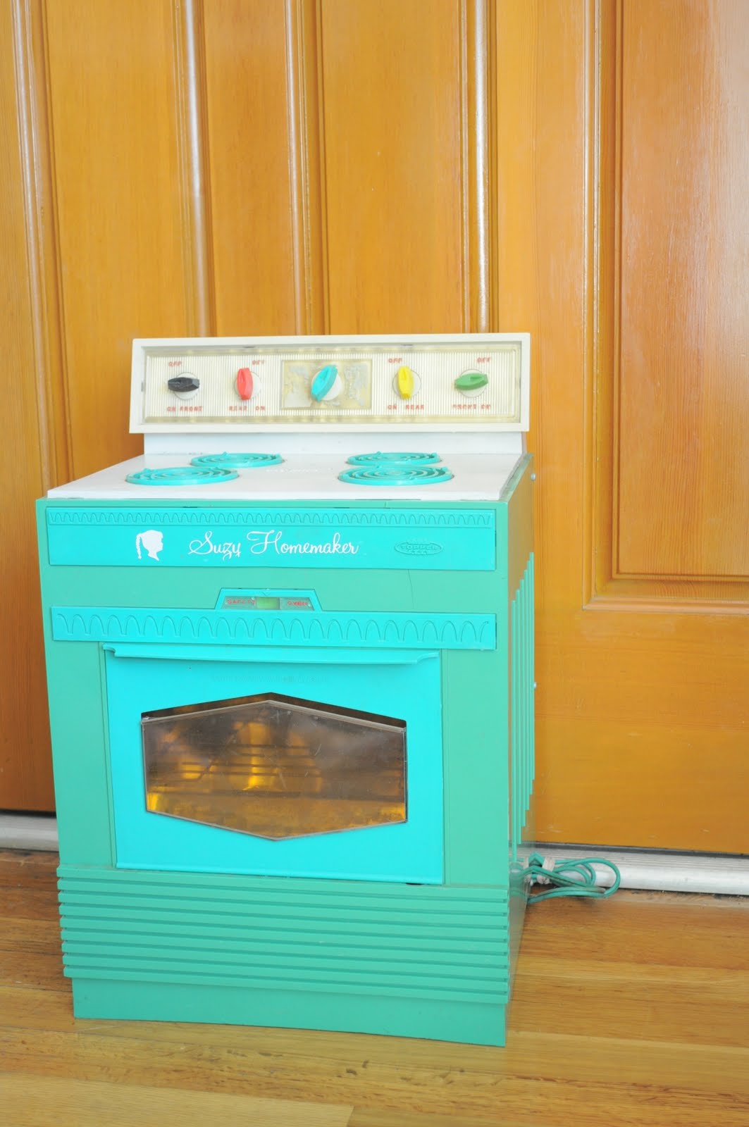 I had swooned over these Vintage Suzy Homemaker toys on ebay and etsy before. My heart skipped a beat when I saw it at Goodwill a few months ago. The colors, the kitsch, the general cuteness of it all is just too much!