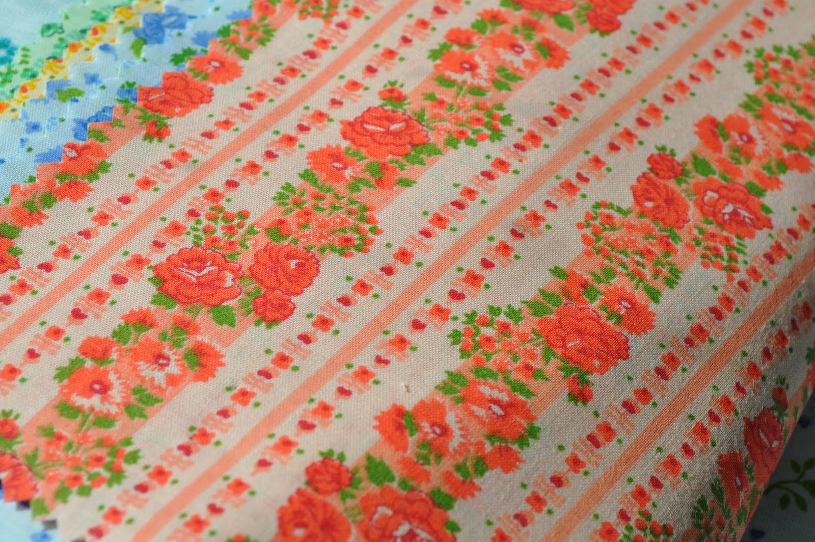 For this super cute Vintage Fisher Price farmer (that wobbles and head-spins when pulled).And this stack of vintage fabric remnants (in pristine condition). I thinking of making Opal a cute birthday bunting. Guess I better get on it!